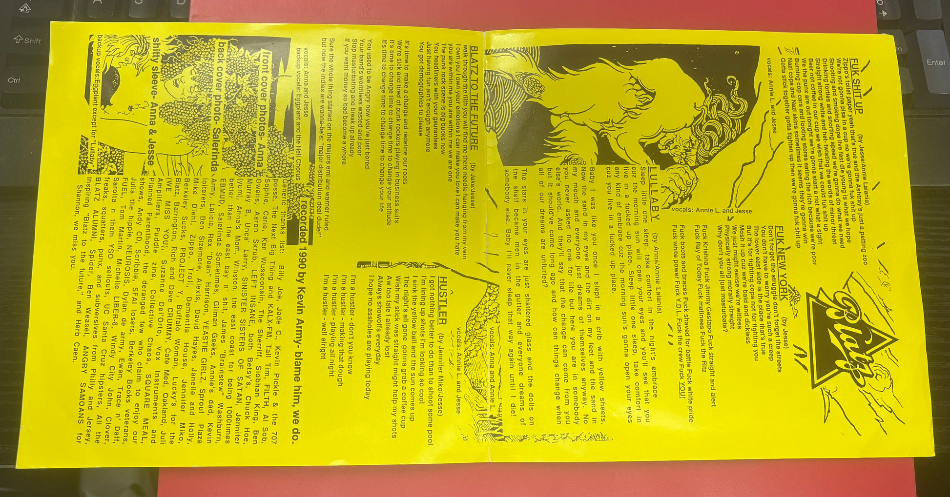 Foldover sleeve contains band photos, lyrics, credits, and artwork.