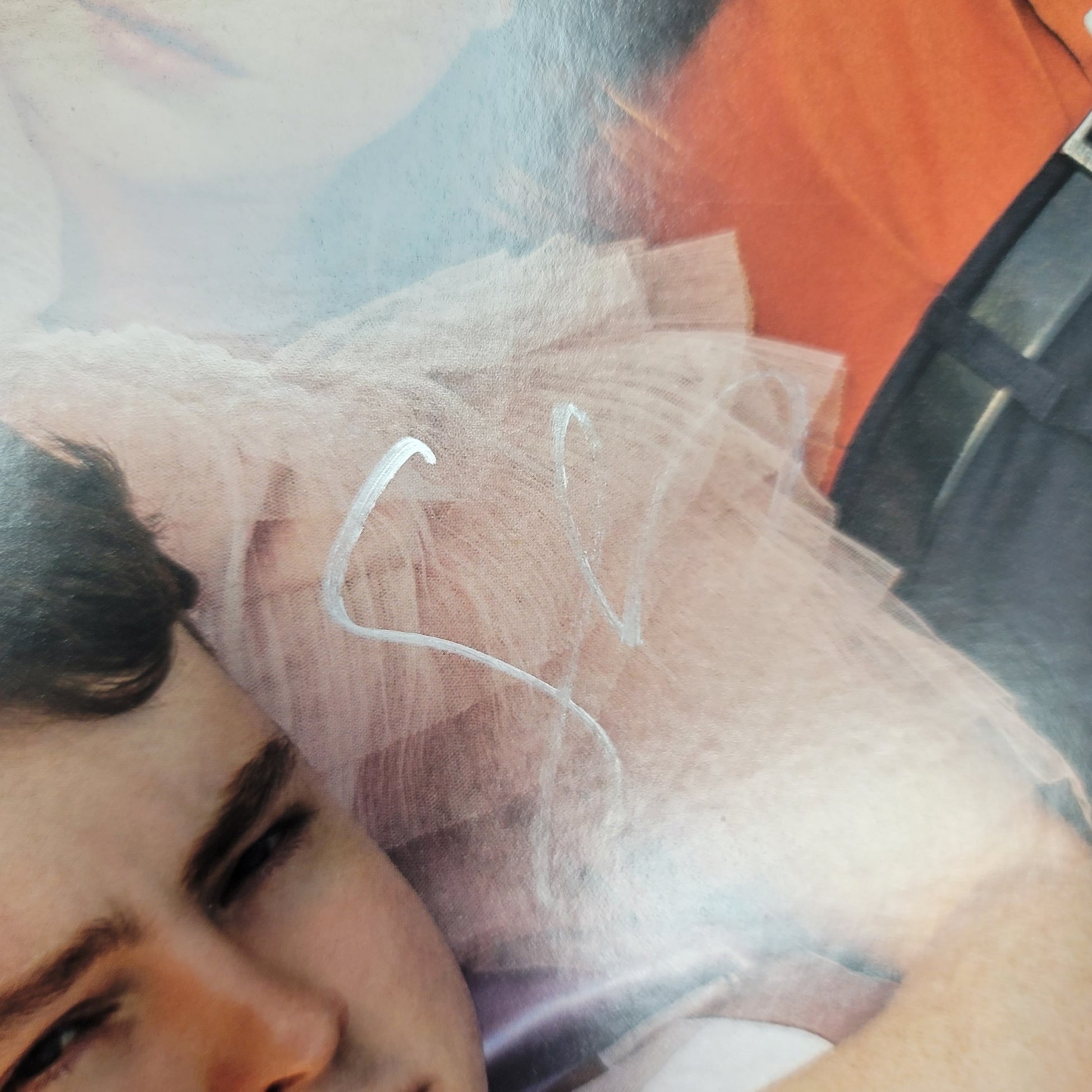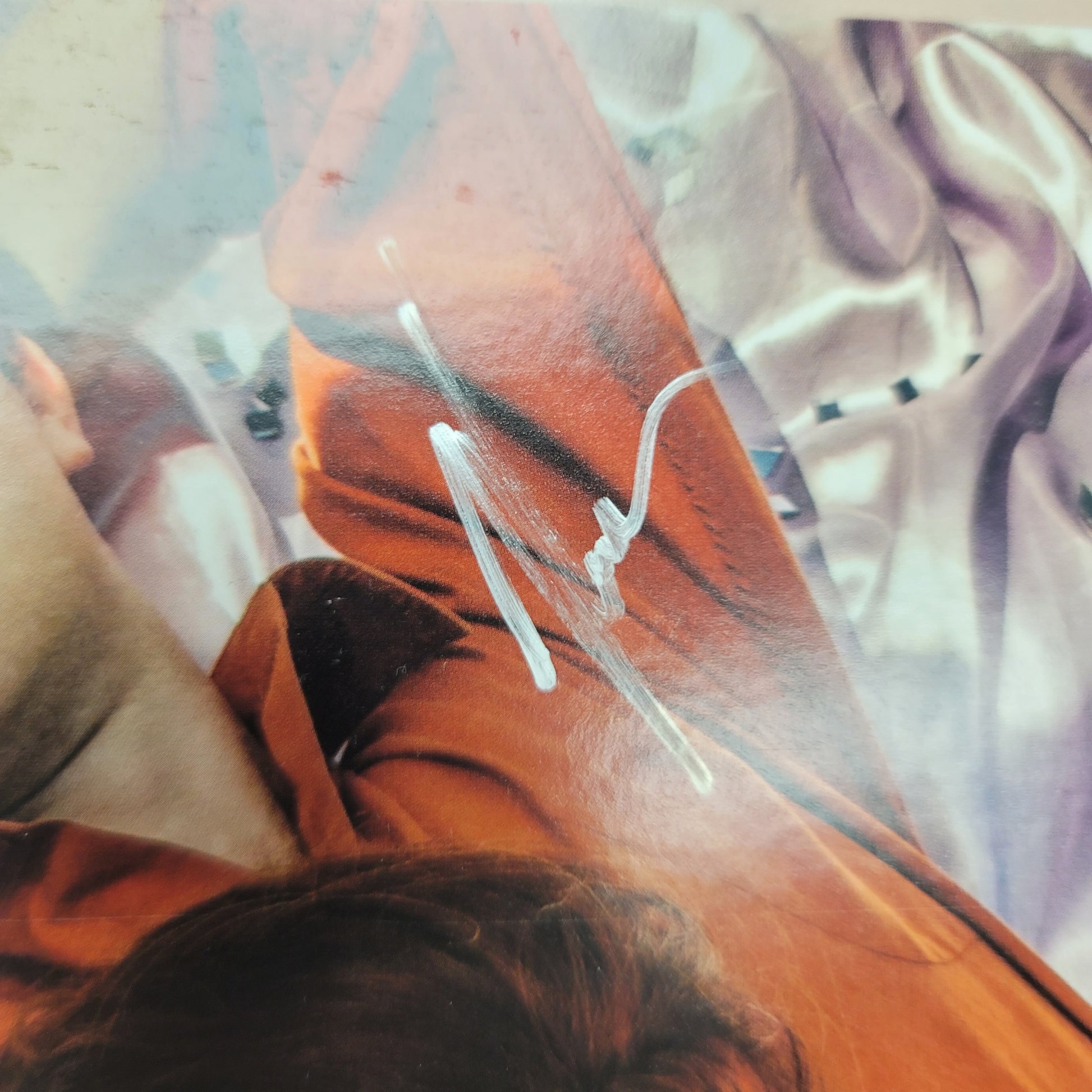 Used copy. Pressed on red/orange vinyl. Front of the jacket has three signatures, but we have no way of verifying authenticity.