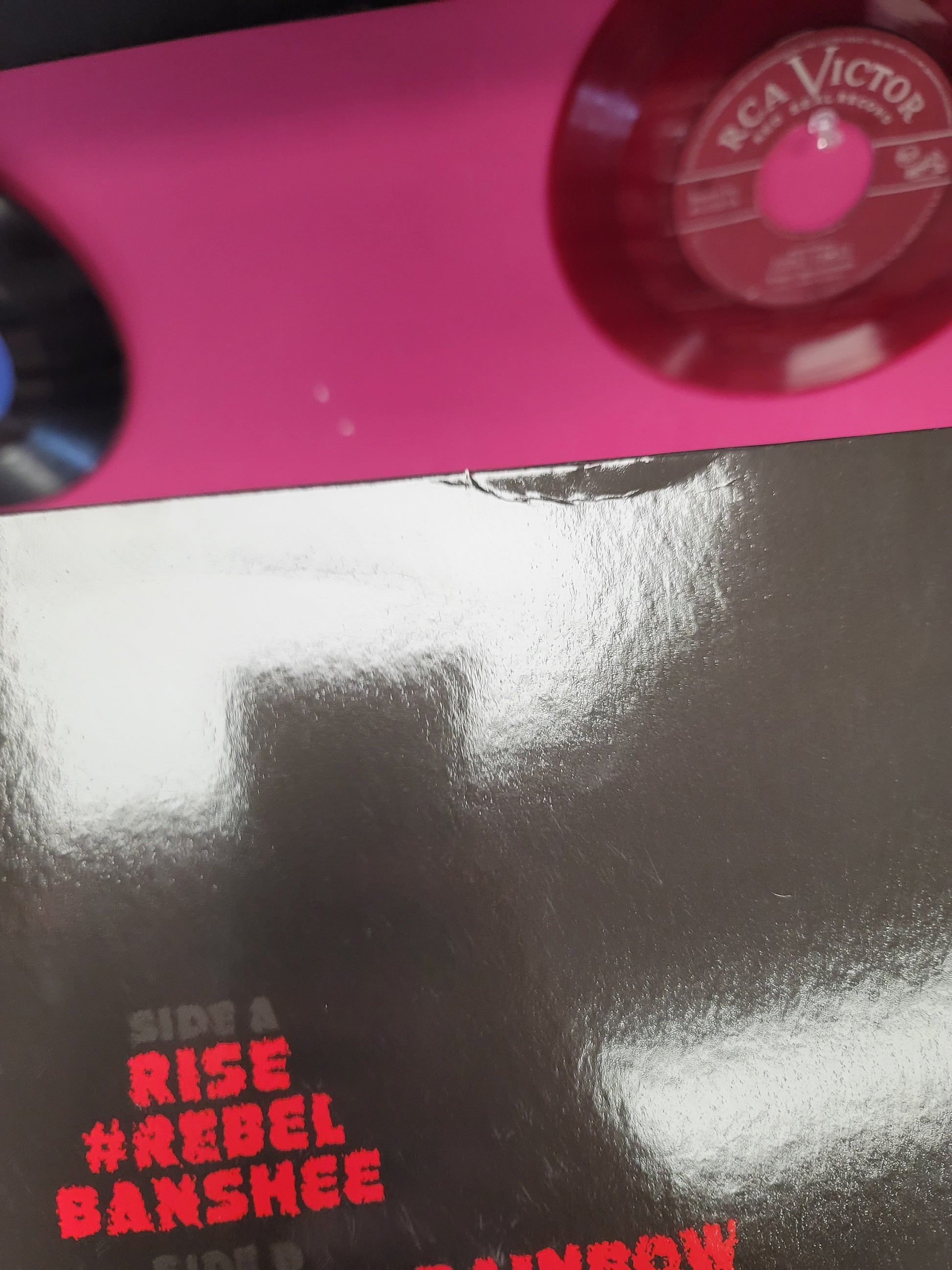 One side of one record has a small scuff that doesn't affect play. Otherwise, vinyl looks clean with no notable scuffing or scratching. Jacket has some light wear - some creasing along the top edge and a spot over the barcode where it looks like a sticker had been removed.