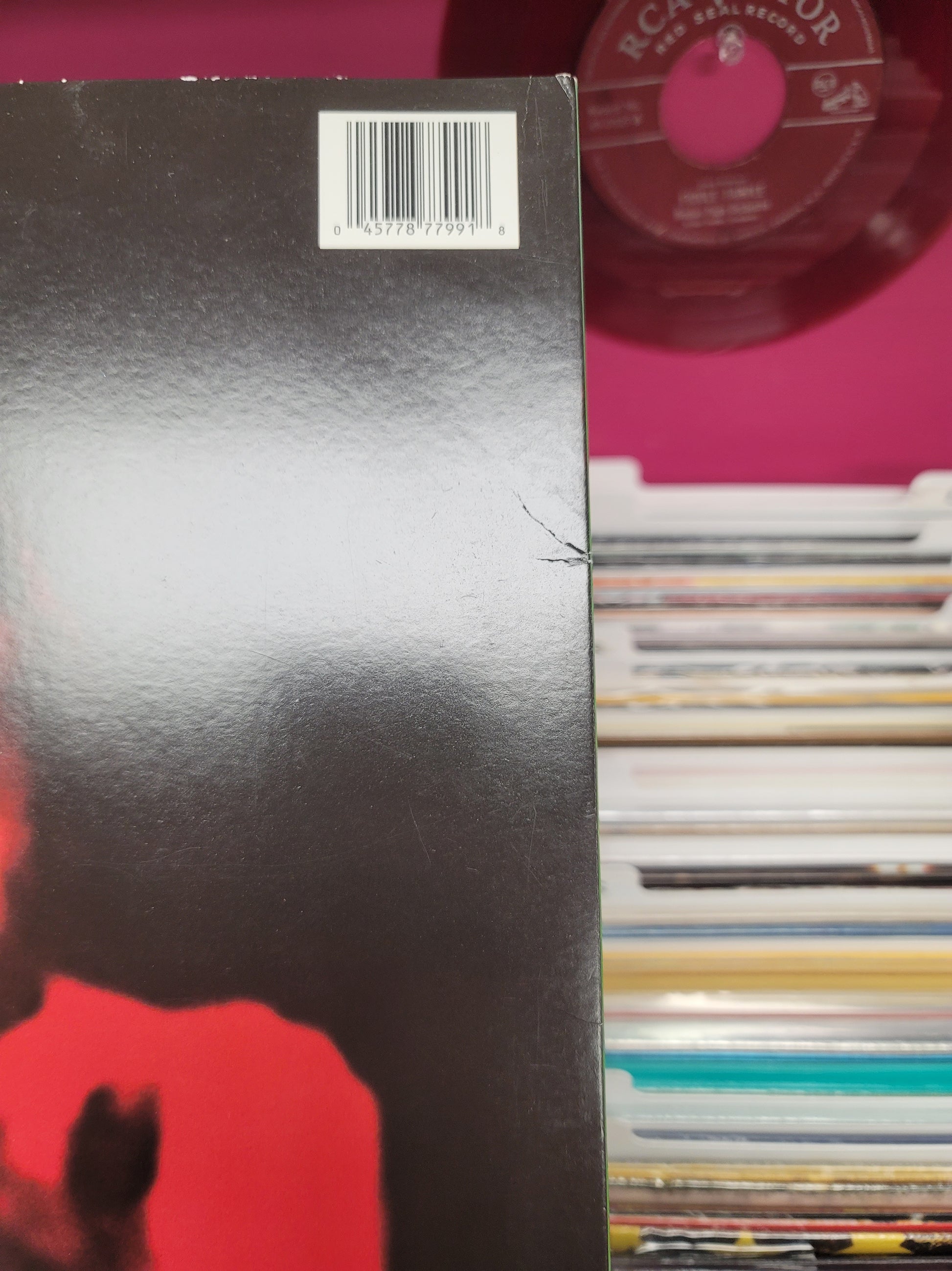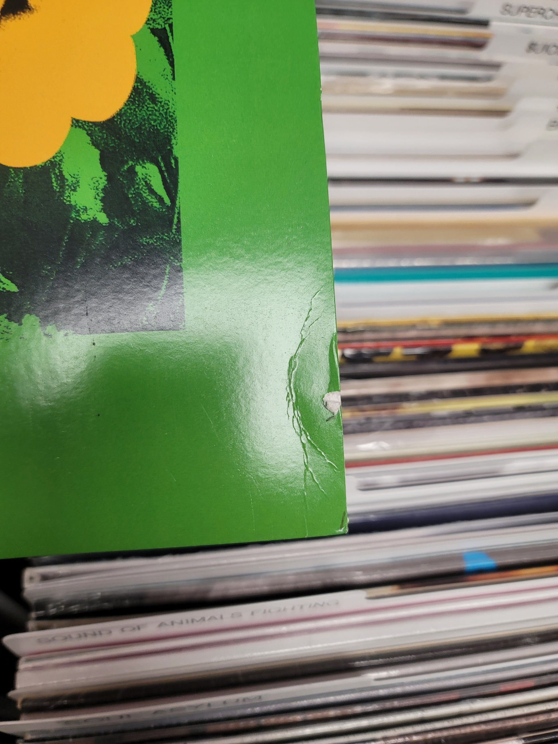 Vinyl is clean with no notable scuffing or scratching. Jacket has some minor damage, including one crease along the top-left hand corner and a ding along the right-hand edge (please see photos). Includes original insert.