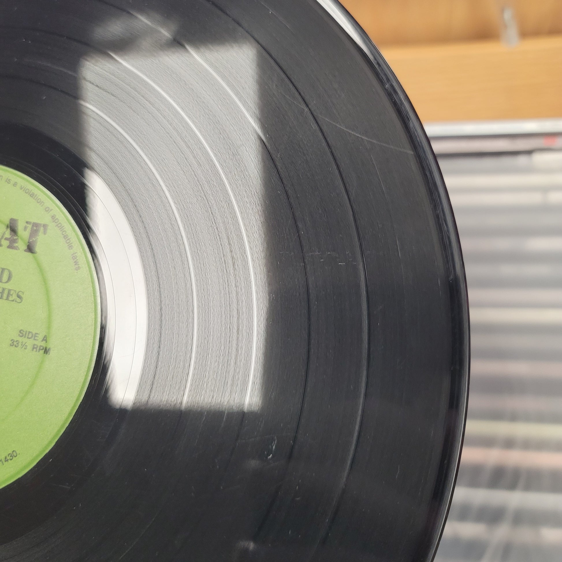 Vinyl has some scratching - did not cause skipping on a test play, but did have some surface noise throughout (most noticeable between songs) and a couple of pops here and there. Jacket is still in original shrink, opened along the side, with moderate wear. Does not include original inner or any inserts.