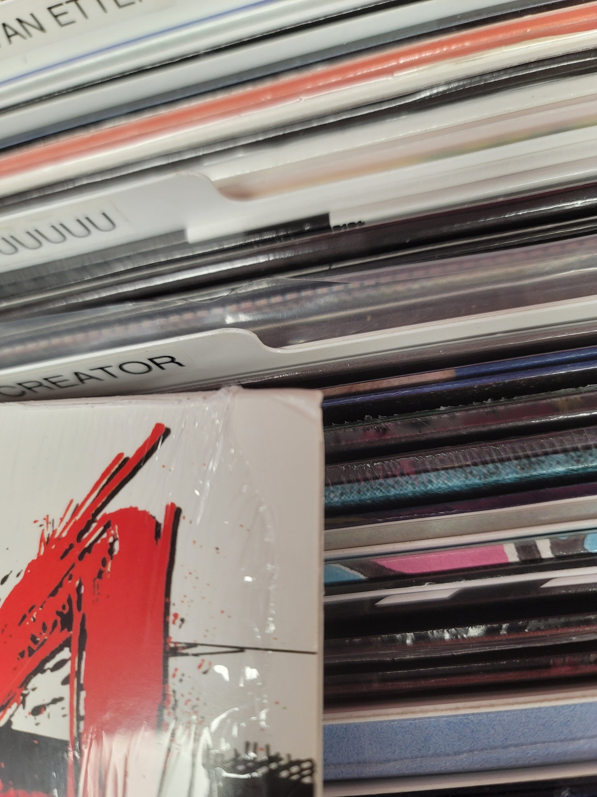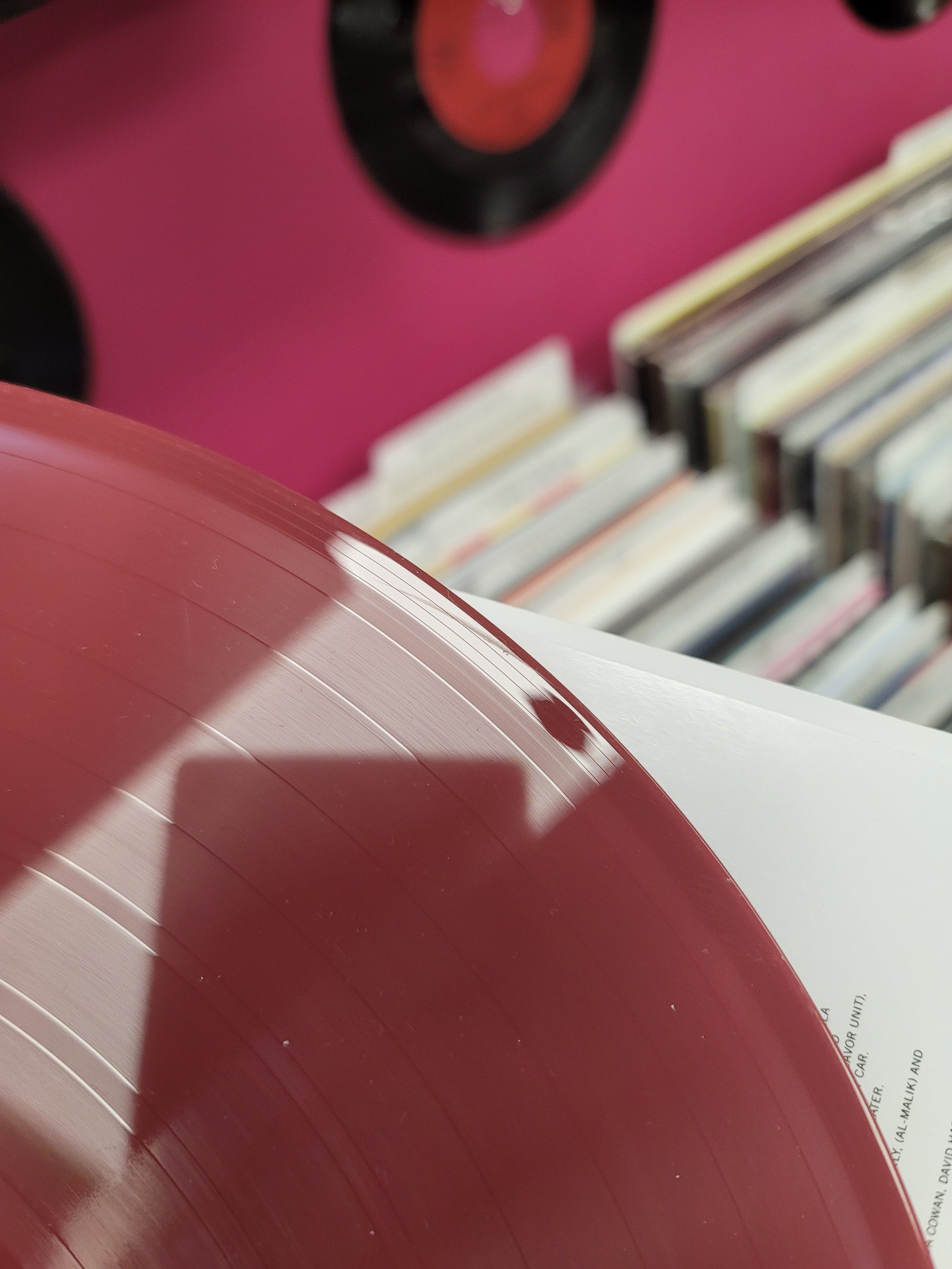 Vinyl looks clean with no notable scuffing or scratching other than a few light scuffs in the outer dead wax (does not affect play). Jacket is still in original shrink wrap w/ hype sticker, opened along the side. Jacket has light wear from normal storage and use and one small ding to the top right hand corner (see photo for details).