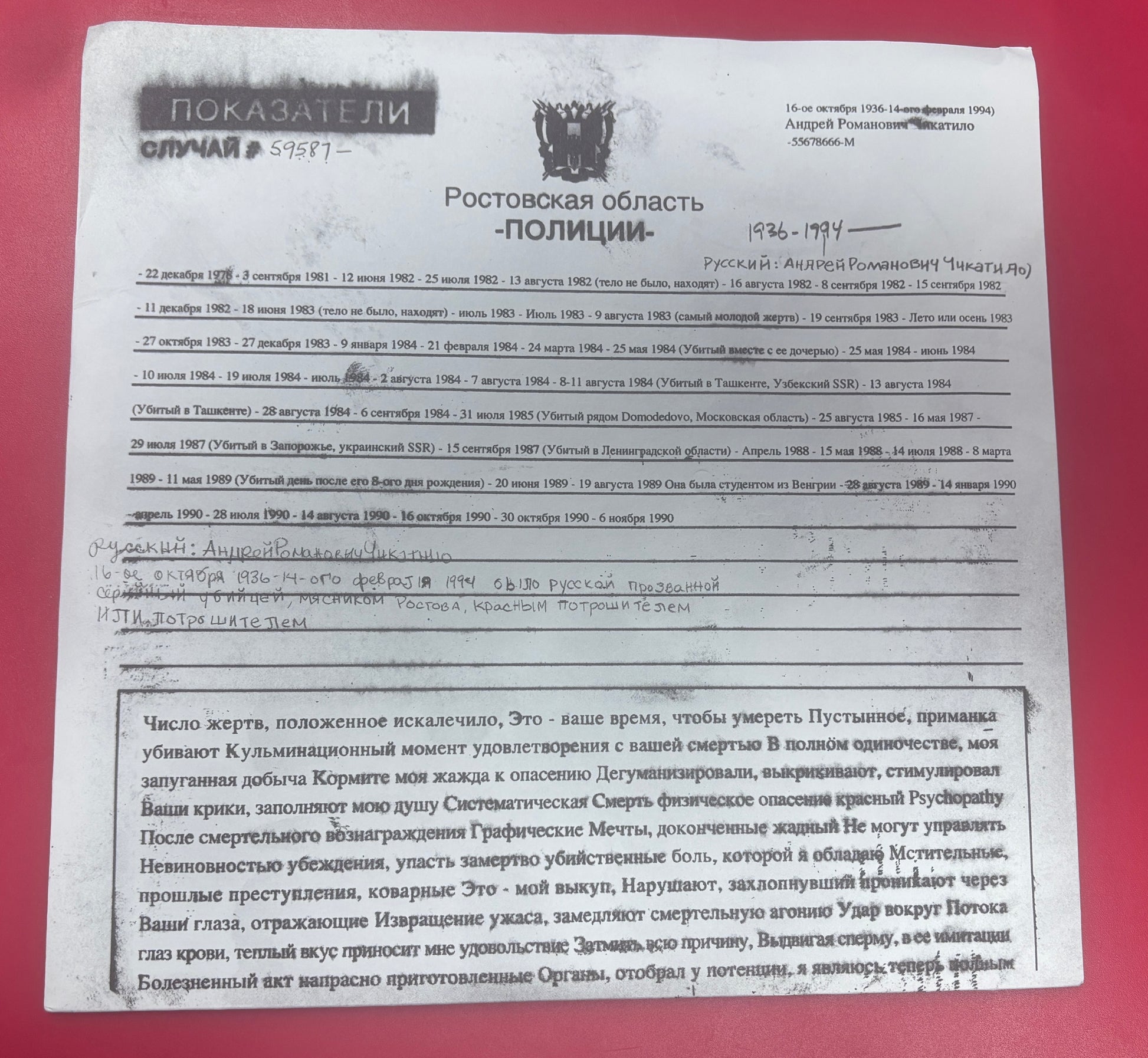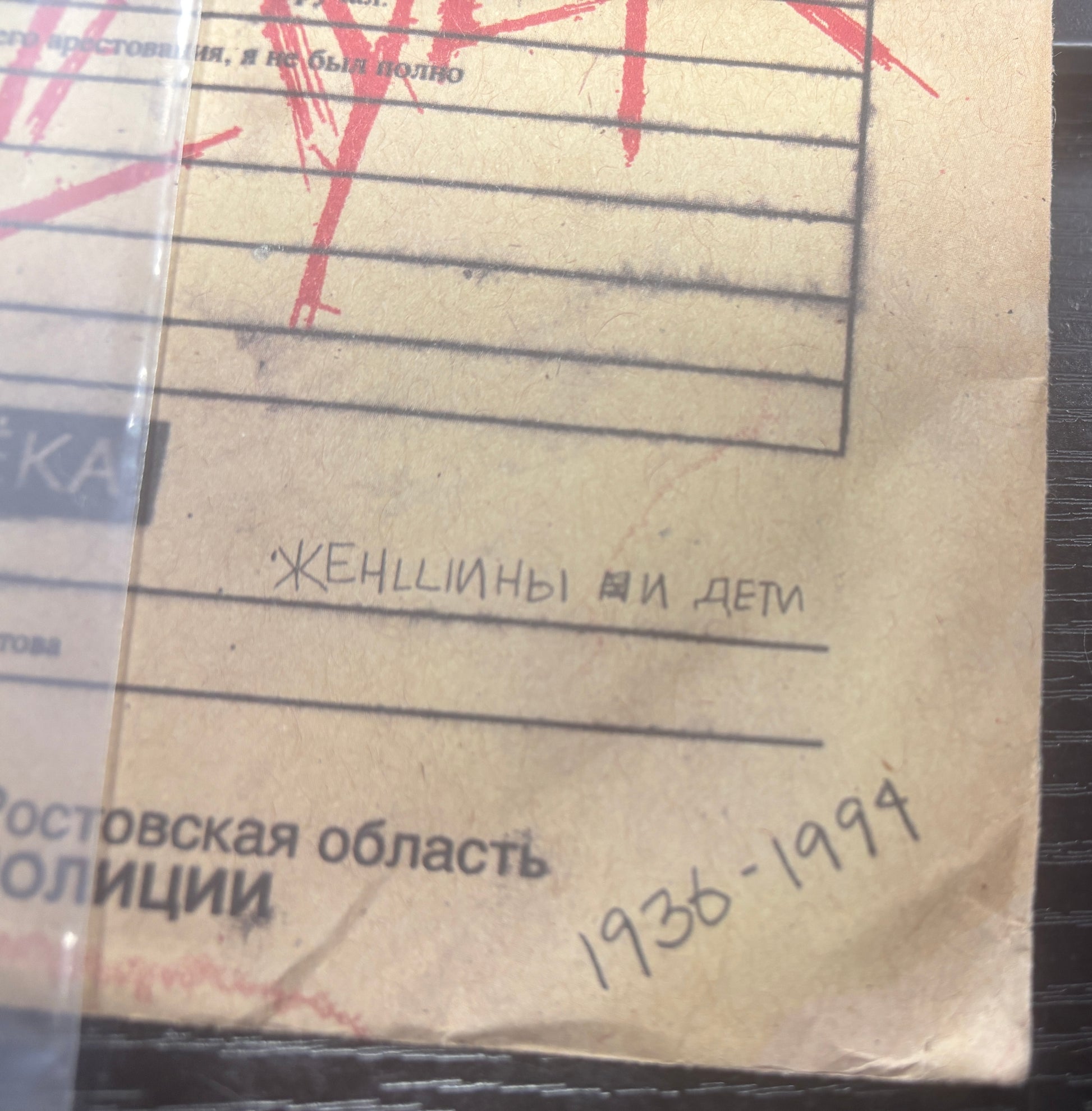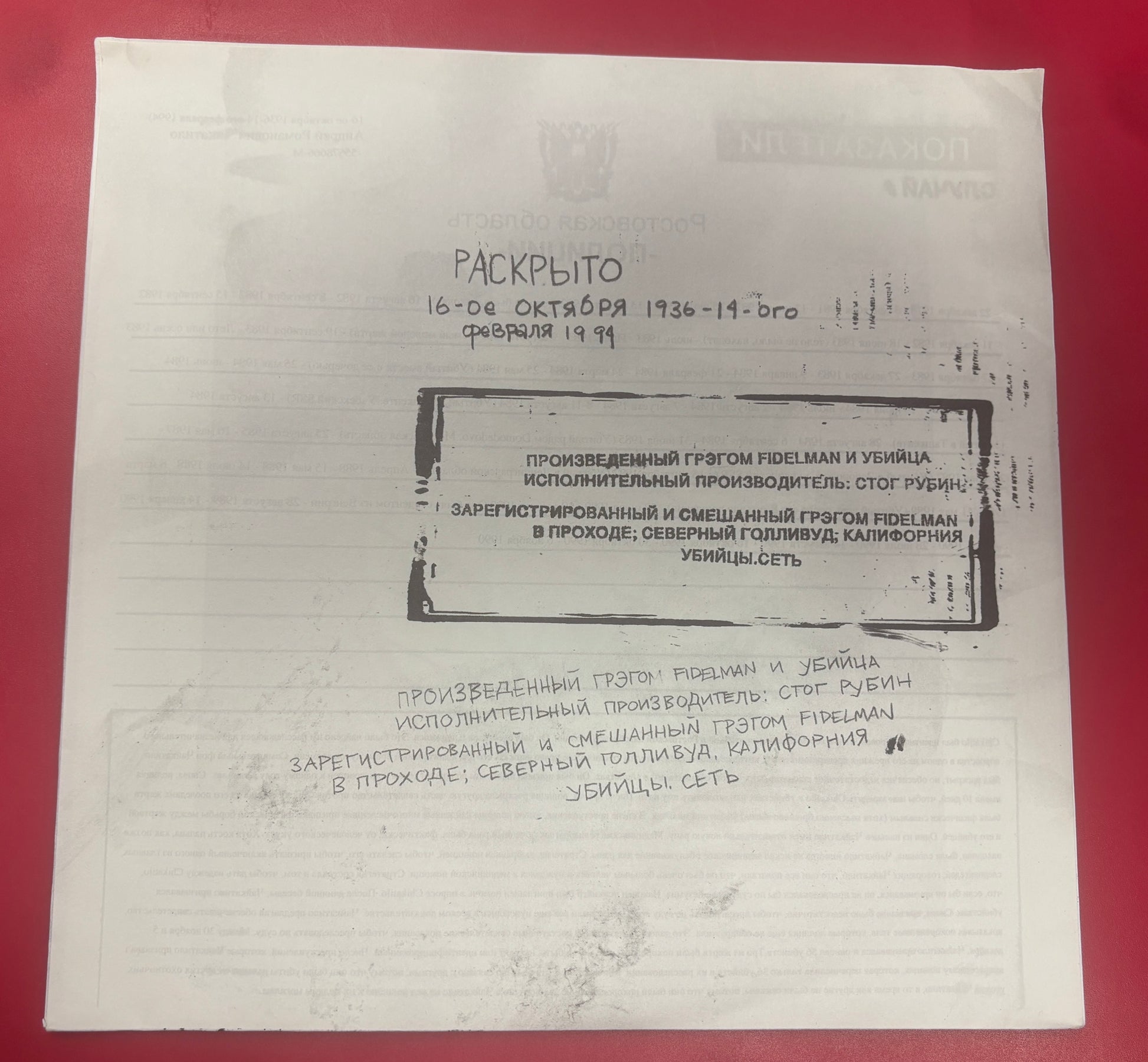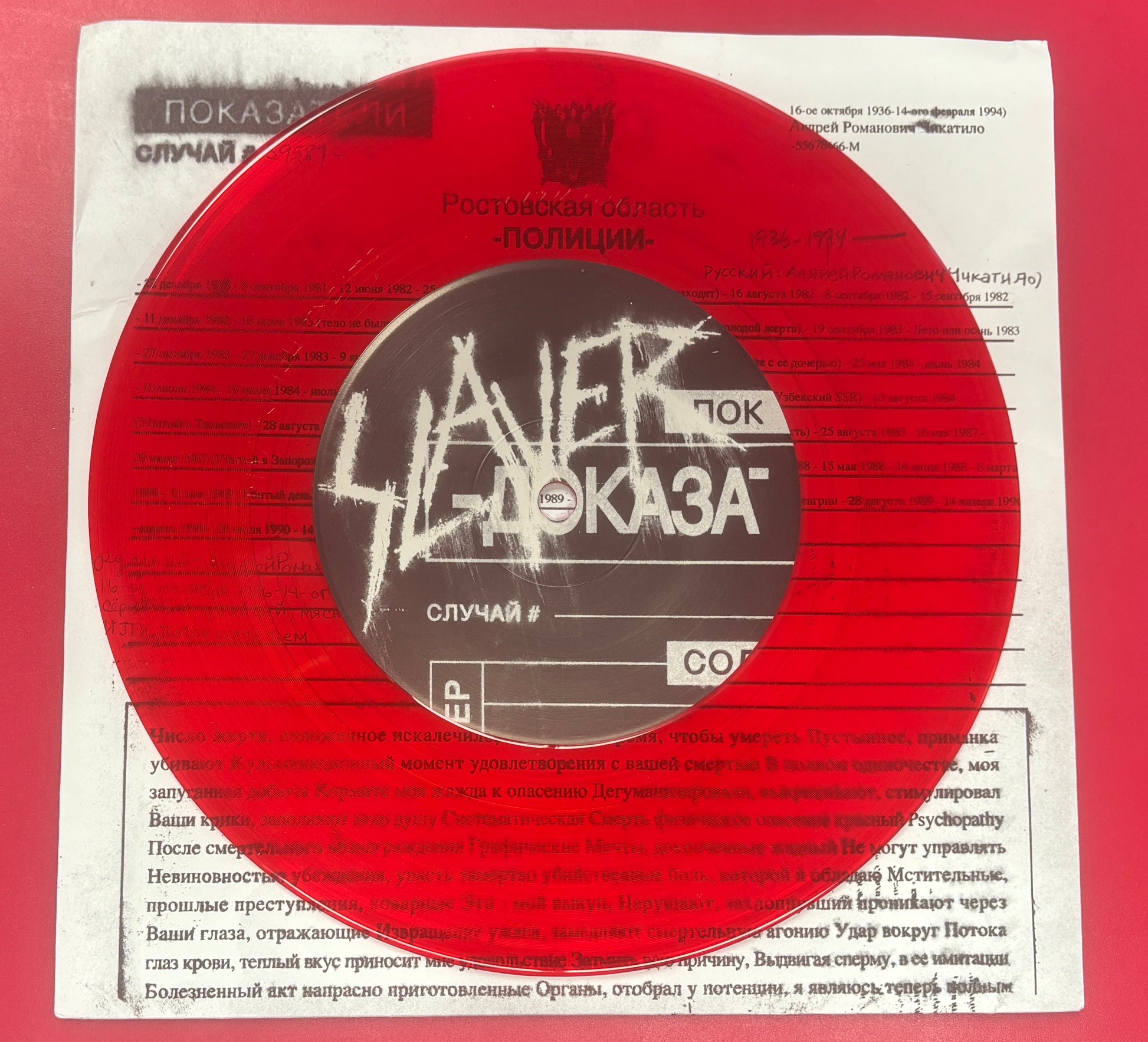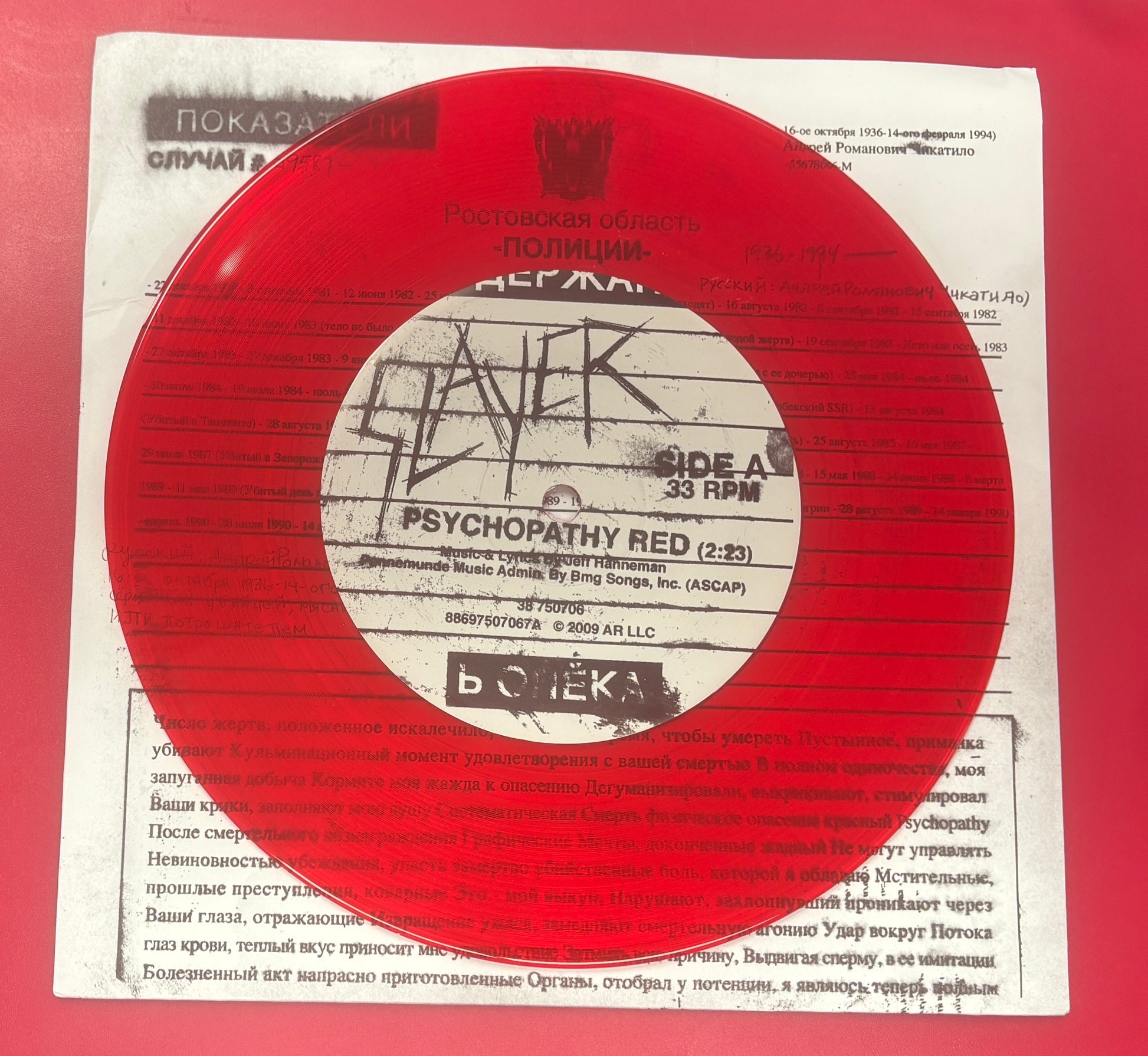 Limited to 5,000 copies. Pressed on transparent red vinyl. The single is in a brown blood-stained crime-scene "evidence envelope"-style package with insert, all with Russian letters, as the song was inspired by Russian serial killer Andrei Chikatilo (aka the Rostov Ripper) who claimed to have murdered 56 children.