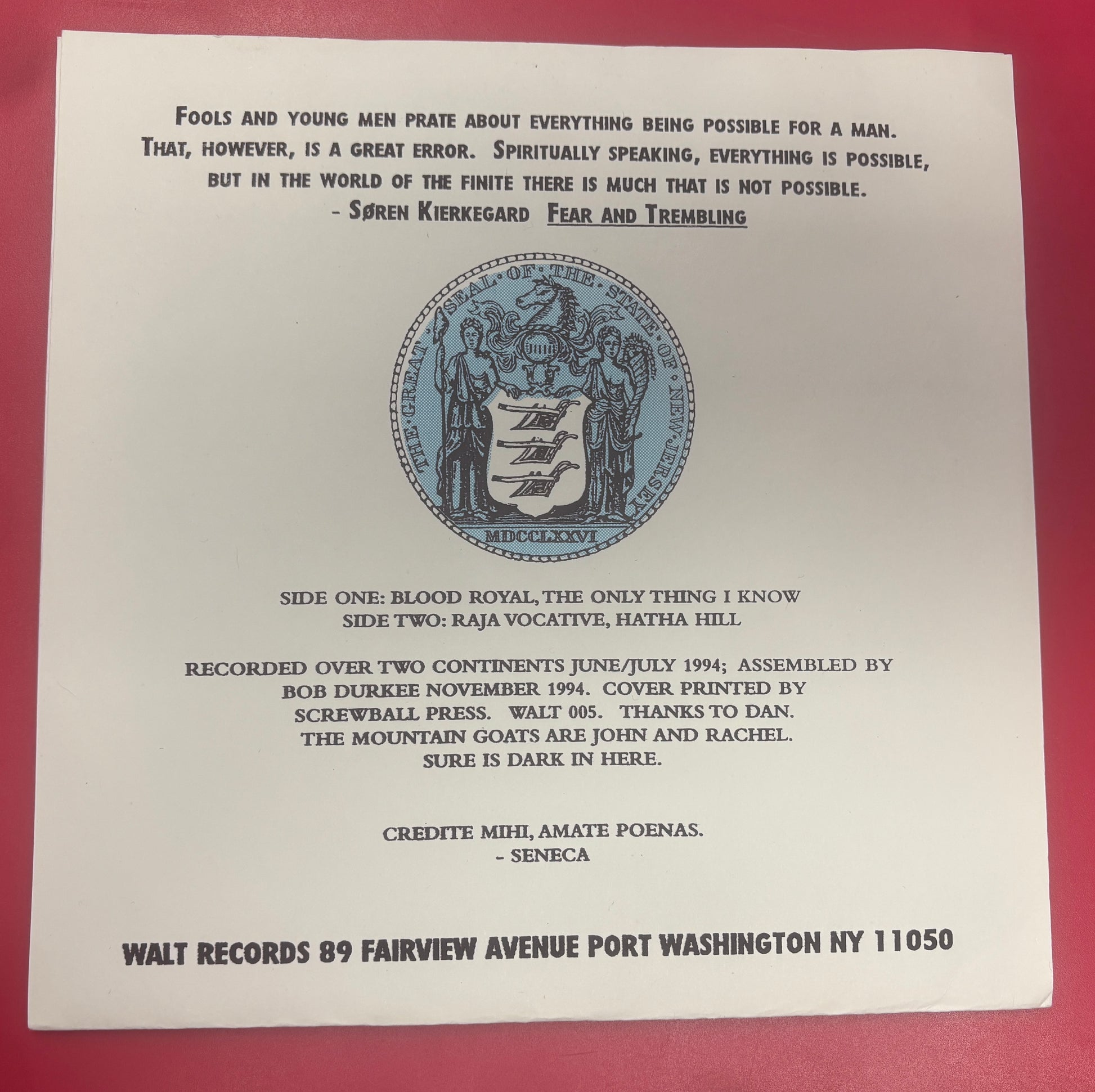 Recorded over two continents June / July 1994; assembled and released November 1994.