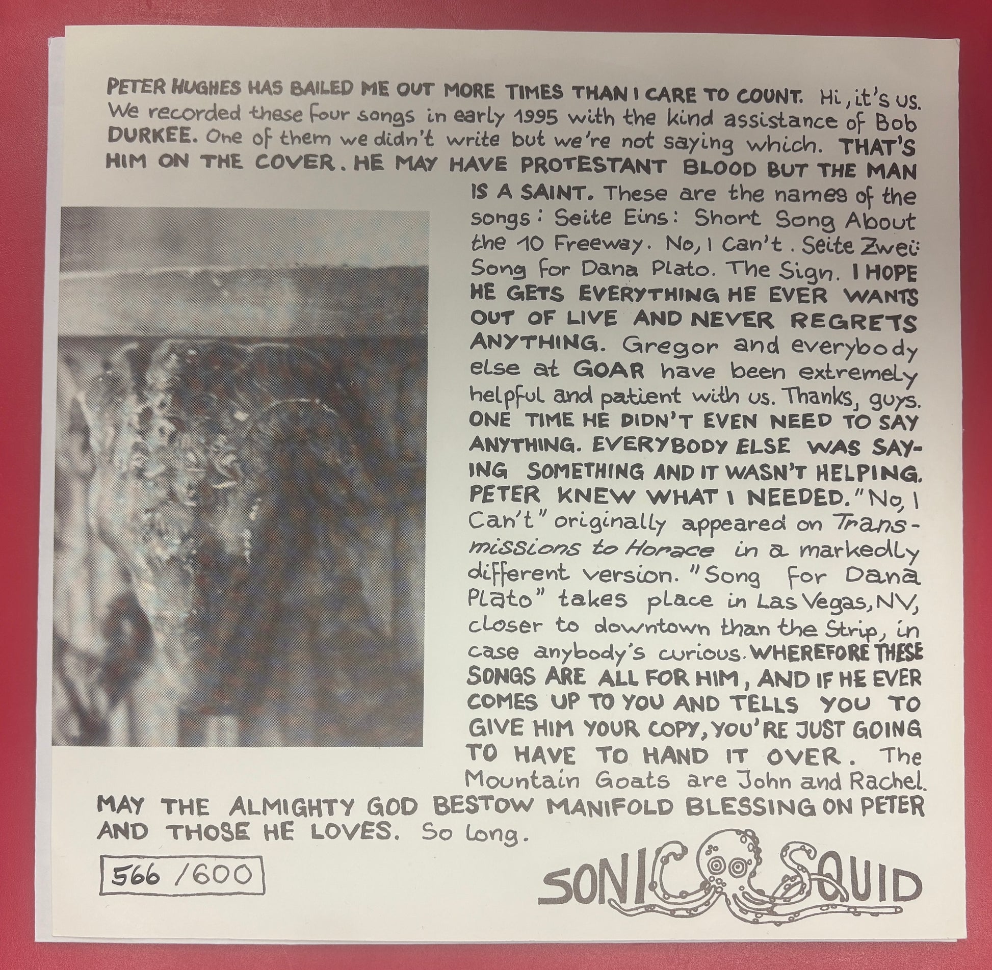 USED: The Mountain Goats - Songs for Peter Hughes 7" vinyl record (1995)