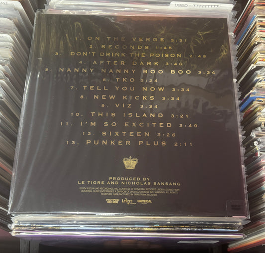 USED: Le Tigre - This Island LP record (black/blush w/ white splatter vinyl)